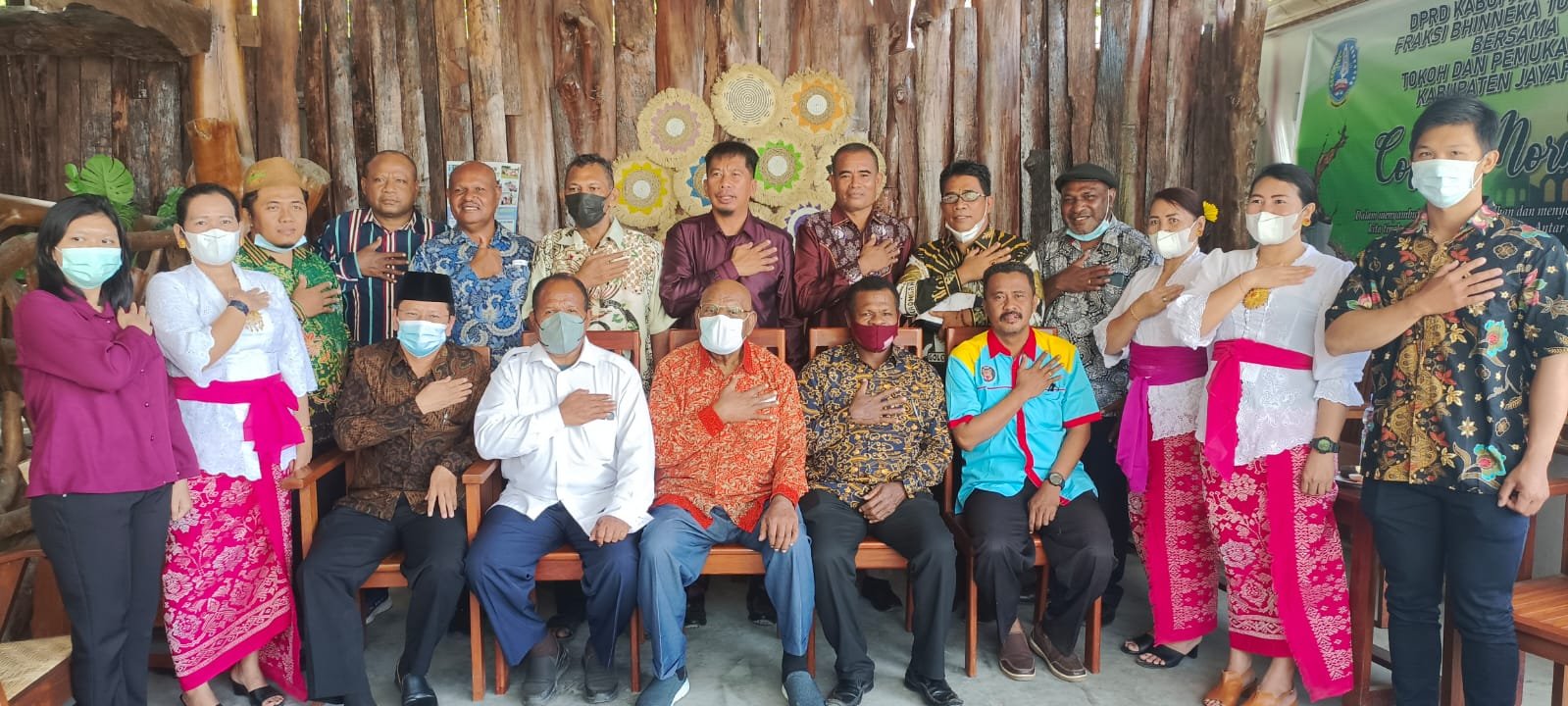 Foto Ketua Fraksi BTI DPRD Kabupaten Jayapura H. Wagus Hidayat, S.E., S.H., bersama anggota Fraksi BTI dengan Ketua FKUB Kabupaten Jayapura Pdt. Alberth Yoku, S.Th, unsur Forkompinda dan tokoh agama .