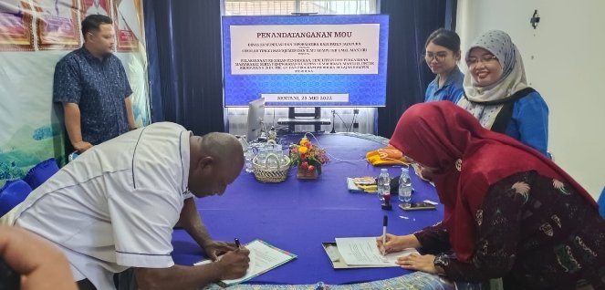 Penandatanganan dilakukan Kepala dinas Kominfo dan Informatika Gustaf Griapon, ST., dan Sekolah Tinggi Manajemen dan Ilmu Komputer Umel Mandiri di wakili wakil ketua Bidang Akademik Nurain Banyal ST, di Ruangan Dinas Kominfo.