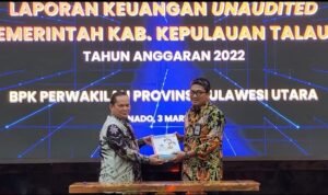TALAUD, KLIKJO.ID–Pemerintah Kabupaten (Pemkab) Talaud bersama tiga kabupaten lainnya menjadi daerah pertama di Sulawesi Utara (Sulut) yang pertama atau tepat waktu, menyerahkan Laporan Keuangan Pemerintah Daerah (LKPD) Unaudited kepada Badan Pemeriksa Keuangan (BPK) Perwakilan Provinsi Sulut.