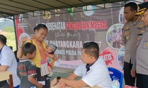 JAYAPURA, Klikjo.id –Dalam rangka HUT Bhayangkara ke-77, Bid Dokkes Polda Papua menggelar Bakti Kesehatan Pengobatan Massal secara gratis yang bertempat di Lapangan BTN Kolam, Kampung Doyo Baru, Kamis (15/6/2023).