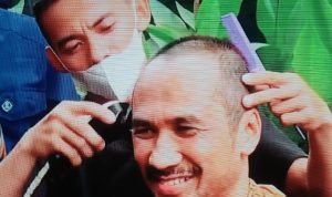 Gundul : Mantan Ketua KPK Abraham Samad mencukur rambut saat aksi bersama di Gedung Merah Putih KPK, Jakarta, Kamis (23/11/2023).(Foto: Ist)
