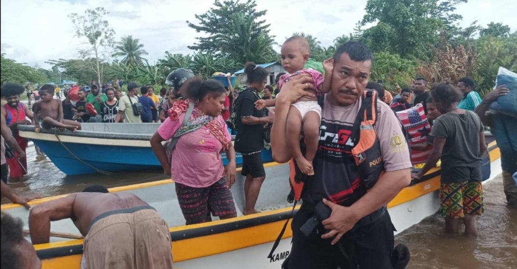 Sementara Kasat Polairud Polres Sarmi, AKP Gustam, memantau banjir yang terjadi di jalan menuju kantor Bupati, tepatnya di Kampung Serwar Baru, Distrik Sarmi Selatan. Anggota Polairud bersama Satuan Sabhara dan Sihumas Polres Sarmi gerak cepat (Gercep) membantu evakuasi warga yang rumahnya terkena banjir.