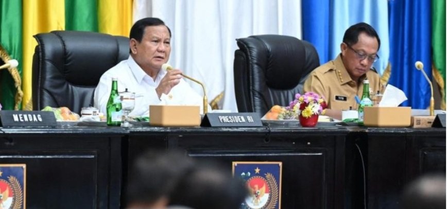 Koordinasi : Presiden Prabowo Subianto saat memimpin Rapat Koordinasi Pengendalian Inflasi 2024 di Sasana Bhakti Praja, Kementerian Dalam Negeri, Jakarta, pada Senin, (9/12/ 2024).(Foto: BPMI Setpres)