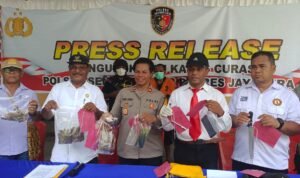 Dari tangan pelaku, Polisi mengamankan sejumlah barang bukti, termasuk narkotika dan obat terlarang (Narkoba) jenis ganja diduga akan diedarkan. Penangkapan ini berlangsung cepat. Kapolres Jayapura AKBP Umar Nasatekay, S.I.K., melalui Kapolsek Sentani Timur Iptu Susan Tecuari didampingi Kepala Distrik Sentani Timur, Eslie Suangburaro, SH, Kanit Reskrim Polsek SenTim. Aiptu Frengki Pangkali,S.H dan Tokoh Masyarakat Anton Maring membeberkan kronologis kerjadian dan proses penangkapan.
