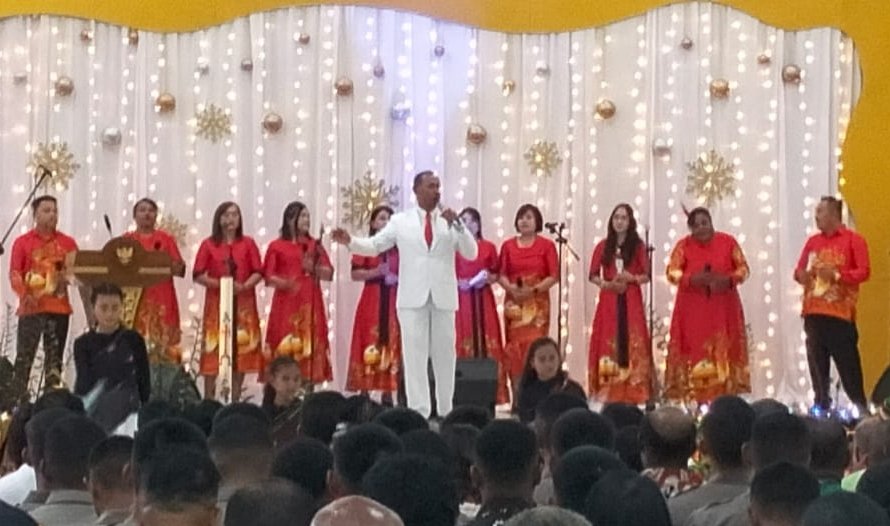 Ibadah dipimpin Pdt. Alexander Muary dan pelayanan firman Pdt. DR Junfrius Gultom, mengangkat  tema “Marilah sekarang kita pergi ke Betlehem (lukas 2:15)” , dengan sub tema, Natal memberikan kehidupan baru untuk menjadi berkat bagi sesama melalui kasih yang mel;ampaui batas (1 Yohanes 4:9).