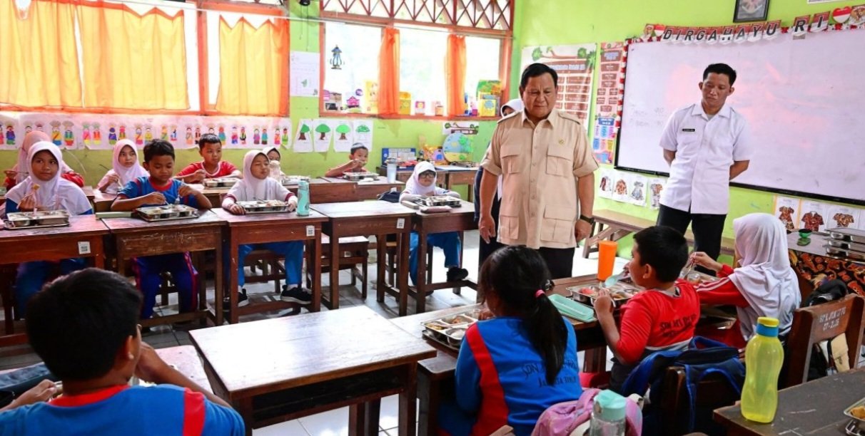 Presiden langsung meninjau program MBG di beberapa kelas, dengan memperhatikan secara seksama menu makanan bergizi yang disajikan.