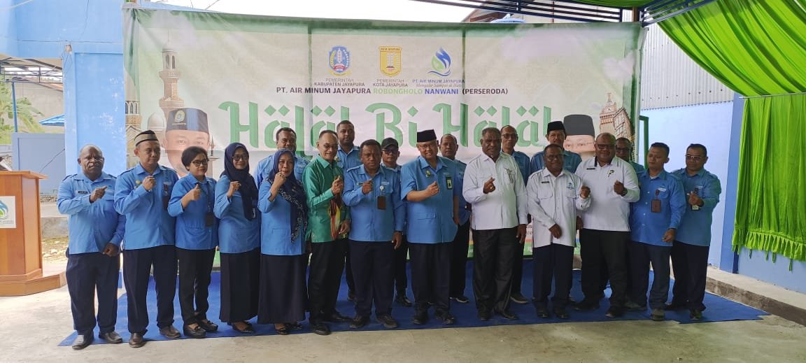 JAYAPURA, Klikjo.id –Keluarga besar PT. Air Minum Jayapura Robongholo Nanwani (Perseroda) menggelar acara Halal Bi Halal dihalaman kantor PT. Air Minum Jayapura Robongholo Nanwani (Perseroda), Rabu (9/4/2025). Dihadiri, Walikota Jayapura, Abisai Rollo, Wakil Bupati Jayapura, Haris Richard Yocku, direksi dan keluarga besar PT. Air Minum Jayapura.