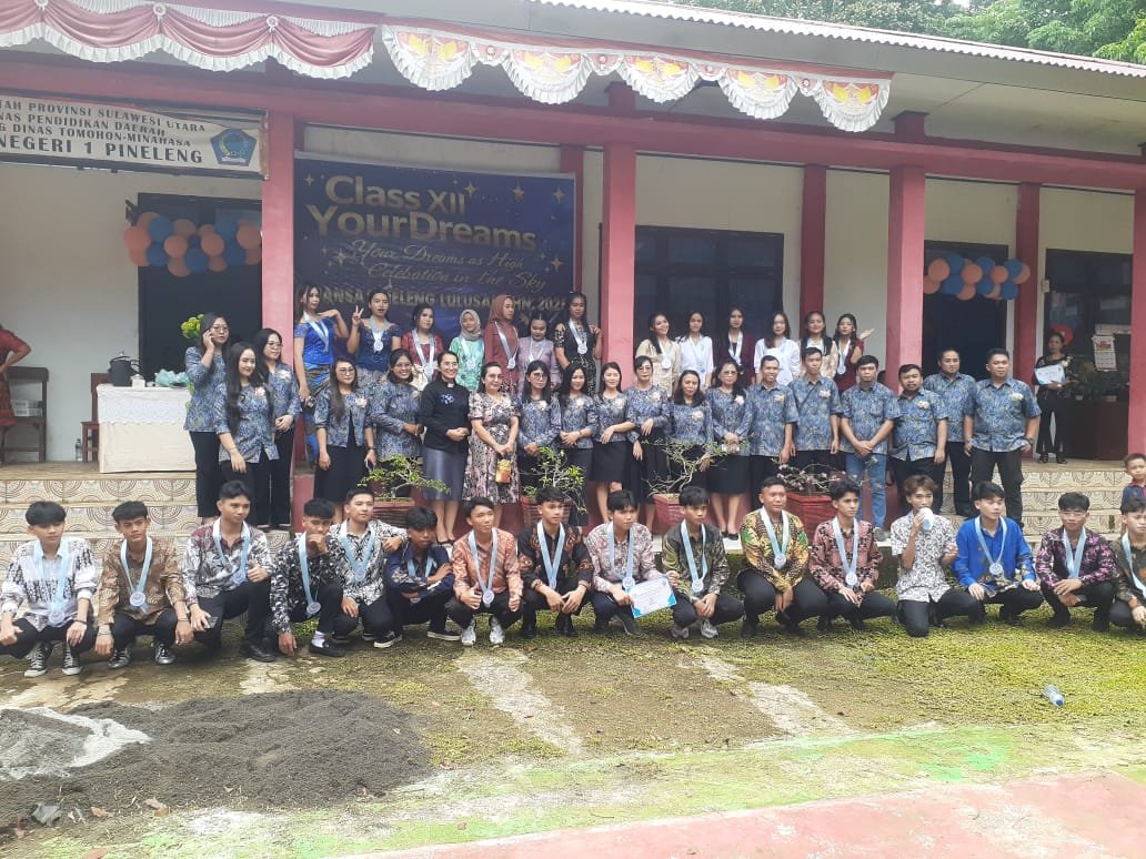 Kebersamaan : Kepsek, guru bersama siswa kelas XII SMA N 1 Pineleng.(Foto: Ist)