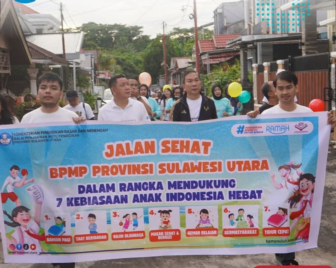 PINELENG, Klikjo.id –Balai Penjaminan Mutu Pendidikan (BPMP) Provinsi Sulawesi Utara menggelar kegiatan jalan sehat pada Jumat (27/6/2025). Kegiatan ini merupakan bagian dari kampanye “tujuh Kebiasaan Anak Indonesia Hebat” yang digagas Kementerian Pendidikan, Kebudayaan, Riset, dan Teknologi (Kemendikbudristek), khususnya pilar ketiga: berolahraga.