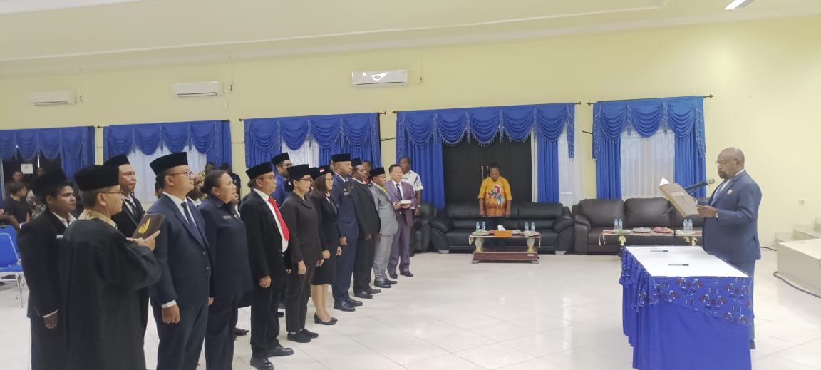Pelantikan : Bupati Jayapura, Dr. Yunus Wonda, S.H., M.H, melantik dua pejabat pimpinan tinggi pratama serta 23 pejabat administrator dan pengawas lingkungan Pemerintah Kabupaten Jayapura, Kamis (5/6/2025).(Foto : ARS)