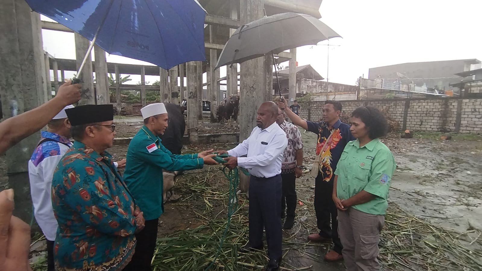 Bupati juga menambahkan bahwa bantuan kurban ini bukan dinilai dari besar atau kecilnya jumlah hewan, melainkan sebagai wujud kasih dan perhatian pemerintah daerah. “Kami tidak melihat dari nilainya, tapi ini bentuk kasih dan komitmen kami dalam merawat kebersamaan tanpa melihat perbedaan agama maupun suku,” ungkapnya.