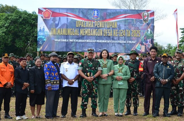 SENTANI, Klikjo.id –Program Tentara Nasional Indonesia (TNI) Manunggal Membangun Desa (TMMD) ke-124 Tahun Anggaran 2025 di Kampung Bring, Distrik Kemtuk Gresi, Kabupaten Jayapura, resmi ditutup dengan menggelar upacara di Lapangan Sepak Bola Kampung Ibub, Rabu (4/6/2025), dipimpin Komandan Korem (Danrem) 172/Praja Wira Yakthi (PWY) Jayapura, Brigjen TNI Tagor Rio Pasaribu, SE, dan dihadiri Bupati Jayapura, Dr. Yunus Wonda, SH, MH, pejabat TNI/Polri, serta pimpinan Organisasi Perangkat Daerah (OPD) Kabupaten Jayapura.