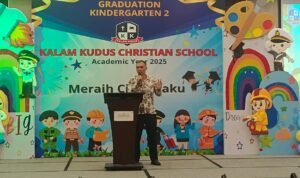 SENTANI, Klikjo.id –Sebanyak 44 anak Taman Kanak Kanak (TK) Kristen Kalam Kudus (KKK) Sentani, terdiri dari 24 laki-laki dan 20 perempuan mengikuti penamatan tahun ajaran 2024/2025, di Hotel Horison Sentani, pada Jumat (6/6/2025, dihadiri Ketua Yayasan Kristen Kalam Kudus Indonesia (YKKKI) Cabang Sentani, Stephen Rorimpandey, ST.