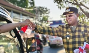 SENTANI, Klikjo.id — Menyemarakkan Hari Ulang Tahun Republik Indonesia (HUT RI) ke-80, Pemerintah Daerah Kabupaten Jayapura bersama jurnalis menggelar aksi bagi-bagi bendera Merah Putih secara gratis kepada pengguna jalan, Senin (5/8/2025), berlangsung di pertigaan lampu merah Jalan Raya Bandara Sentani dan mendapat sambutan antusias dari masyarakat.