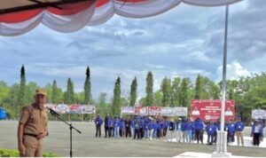 Foto: Plt. Sekda Kabupaten Jayapura, Dr. Abdul Rahman Basri, S.Sos., M.KP., saat melepas 220 mahasiswa FKIP Uncen usai KKN Mandiri di Lapangan Apel Kantor Bupati Jayapura, Senin (25/8/2025). (Ist)