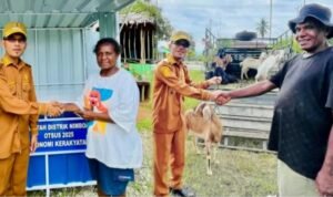 SENTANI, Klikjo.id – Pemerintah Distrik Nimbokrang menyalurkan hewan ternak, 20 ekor kambing dan 40 unit box kontainer kepada penerima manfaat Orang Asli Papua (OAP). Bantuan yang bersumber dari Dana Otonomi Khusus (Otsus) Tahun 2025 ini disalurkan ke enam kampung di wilayah Distrik Nimbokrang.