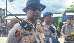 Foto: Kapolresta Jayapura Kota, Kombes Pol Fredrickus W.A. Maclarimboen, saat diwawancarai awak media terkait pengamanan aksi unjuk rasa mahasiswa di beberapa titik di Kota Jayapura, Rabu (24/9/2025).(Ist)