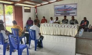 FOTO: Ketua Komisi A DPRK Jayapura, Wihelmus Manggo, saat memimpin pertemuan dengan masyarakat di Kantor Kampung Waiya, Distrik Depapre, Kabupaten Jayapura.(Ist)