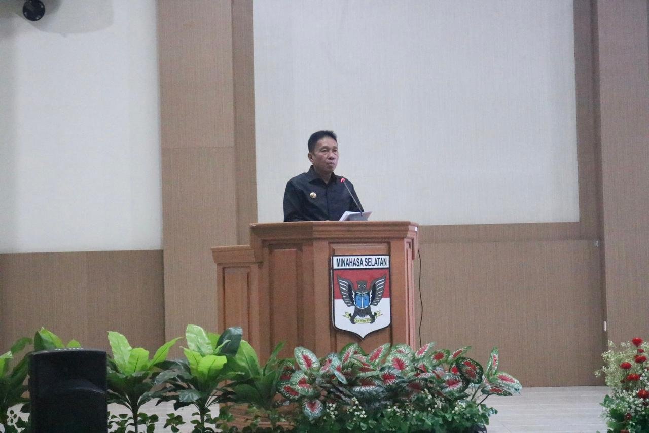 Sambutan : Bupati Minsel Franky Donny Wongkar SH, saat menghadiri Rapat Paripurna DPRD, Senin (29/9/2025) dan menyampaikan keberhasilan daerah menekan inflasi hingga menjadi yang terendah di Sulut.(Ist)