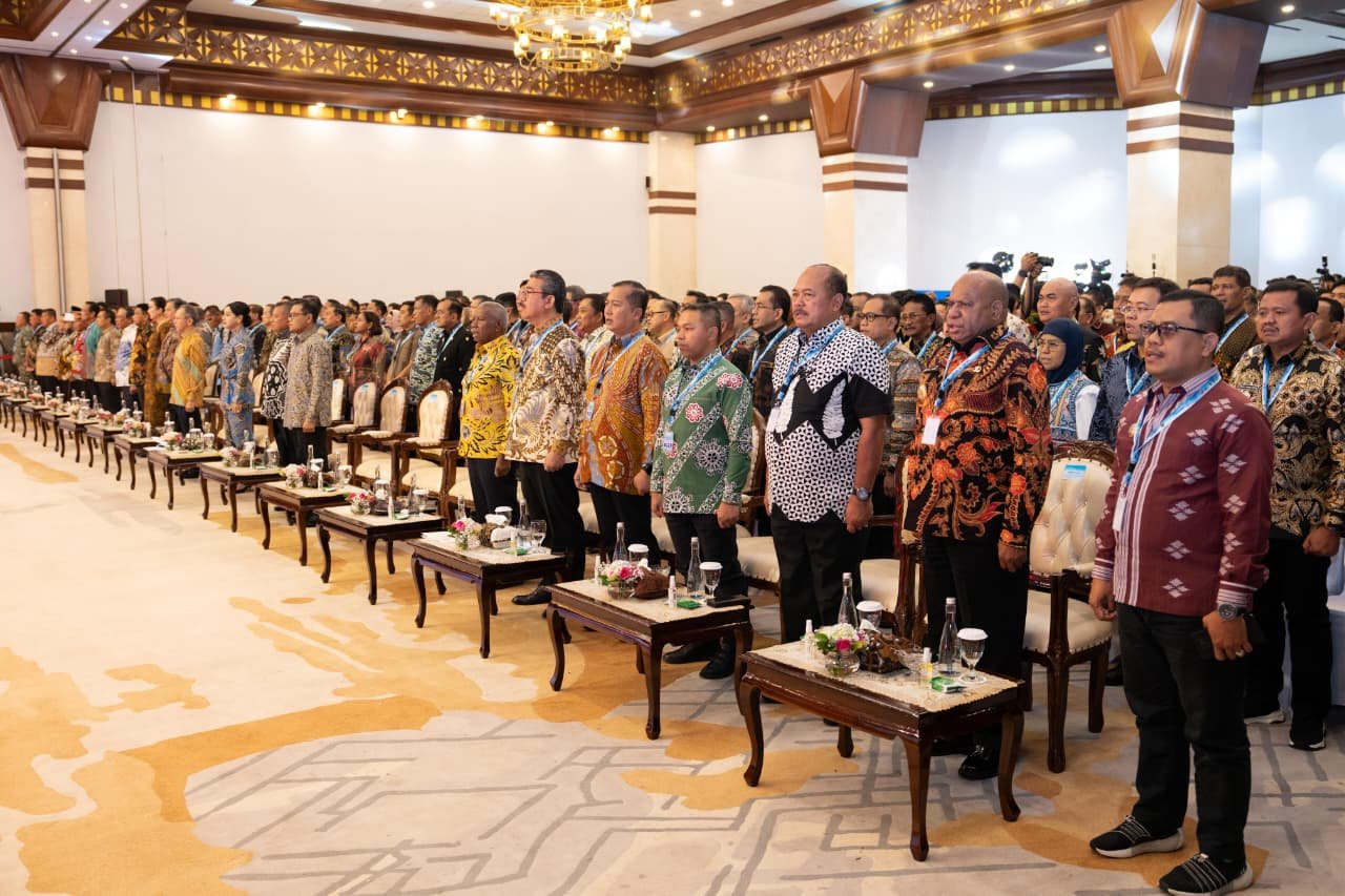 Foto: Gubernur Papua Mathius Fakhiri bersama seluruh kepala daerah se-Indonesia menghadiri Rapat Koordinasi Nasional Tim Percepatan Akses Keuangan Daerah (Rakornas TPAKD) 2025 di Balai Kartini, Jakarta, Jumat (10/10/2025).(Ist)