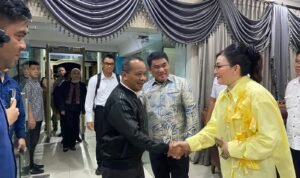Foto : Menteri Bahlil bersalaman dengan nggota DPR – RI Dapil Sulut, Christiany Eugenia Paruntu SE.(Ist)