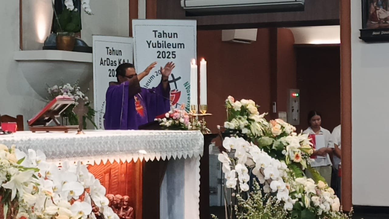 Misa arwah yang dimulai pada pukul 9.00 wib di pimpin oleh Pastor Gregorius Pontus. OFM.