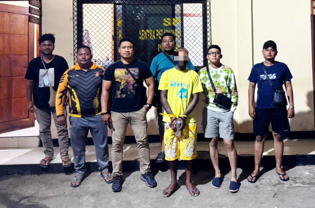 Diciduk : Pelaku penikam warga negara asing (WNA) asal Papua New Guinea (PNG) saat diamankan Satuan Satreskrim Polresta Jayapura Kota bersama Polsek Abepura.(Foto: Ist)