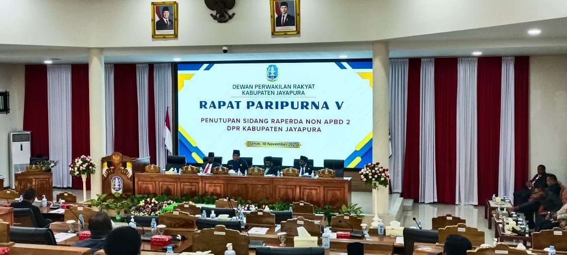 Paripurna digelar di ruang rapat DPRK Jayapura, pada Senin (10/11/225). Sebelumnya, pembahasan dilakukan melalui tiga tahapan paripurna, mulai dari jawaban Bupati atas laporan Bapemperda hingga pendapat akhir fraksii.
