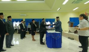 Pelantikan : Bupati Jayapura Dr Yunus Wonda SH, MH, melantik Eymus Weya sebagai Direktur Utama Perusahaan Daerah (Perusda) Kasih Mempersatukan Perbedaan (KMP) Kabupaten Jayapura masa bakti 2025–2029, Rabu (12/11/2025).(Foto:ARS)