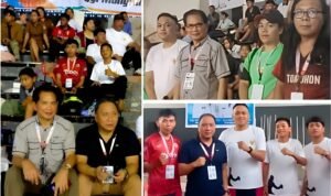 SEMANGATI: Ketua Harian KONI Kota Tomohon Drs Johny Runtuwene didampingi Sekretaris Umum Ferdinand Mono Turang SSos mendampingi para atlet Kota Tomohon berlaga di Porprov XII Sulawesi Utara 2025.