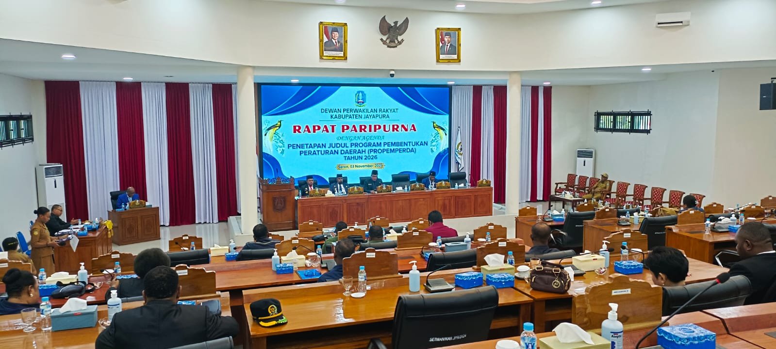 SENTANI, Klikjo.id — Dewan Perwakilan Rakyat Kabupaten (DPRK) Jayapura menggelar Rapat Paripurna agenda Penetapan Program Pembentukan Peraturan Daerah (Propemperda) Tahun 2026, di ruang sidang utama kantor DPRK, pada Senin (3/11/2025).