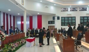 Ketua DPRK Jayapura, Ruddy Bukanaung SE memimpin seremoni peresmian pemberhentian dan pengangkatan anggota DPRK Jayapura masa jabatan 2024–2029.