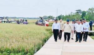JABAR, Klikjo.id –Presiden Republik Indonesia (RI), Prabowo Subianto, meninjau implementasi teknologi pertanian modern dan program hilirisasi sektor pertanian, bersamaan Panen Raya di Desa Kertamukti, Karawang, Jawa Barat, pada Rabu, (7/1/2026).