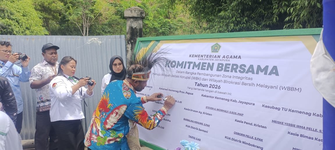 Ditandai penandatanganan komitmen bersama, bertepatan syukuran pembangunan gedung Kemenag Kabupaten Jayapura, pada Kamis (15/1/2026).