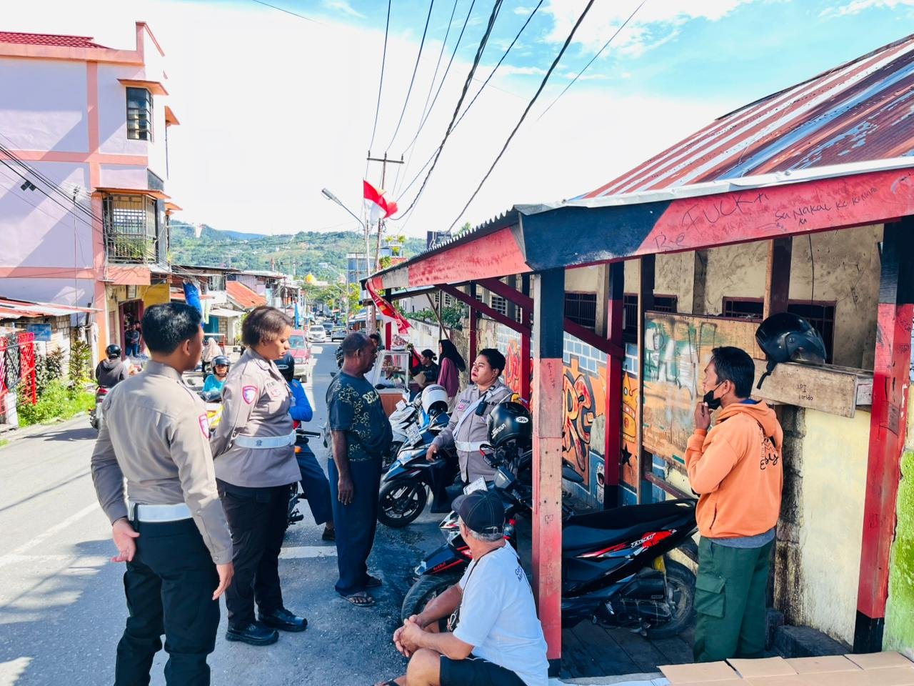 Penyampaian imbauan dipimpin Aiptu Martina Meygar bersama personel Satlantas Polresta Jayapura Kota.