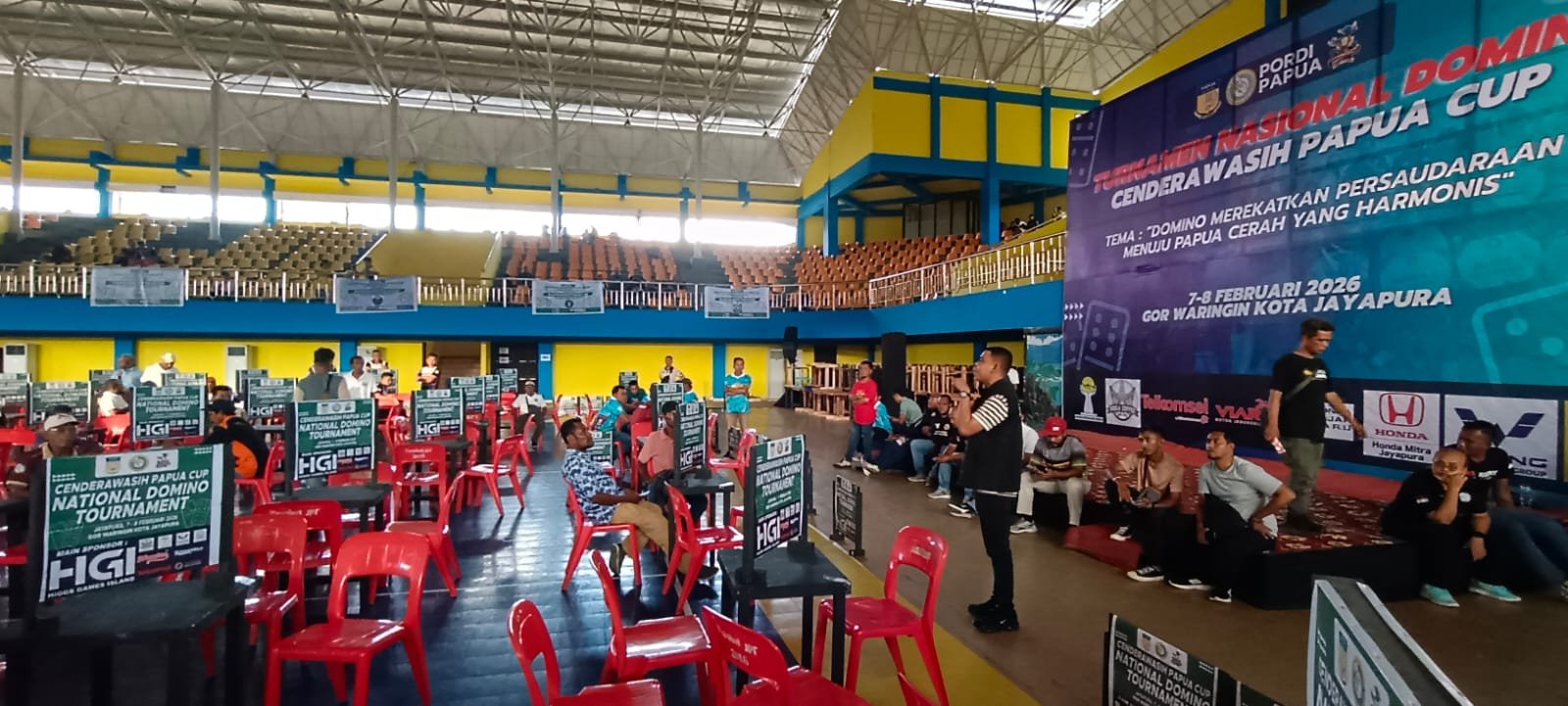 JAYAPURA, Klikjo.id –Hari kedua pelaksanaan Turnamen Domino Cendrawasih Papua Cup 2026 di GOR Waringin, Kota Raja, Kota Jayapura, Minggu (8/2/2026), persaingan antar peserta semakin ketat.