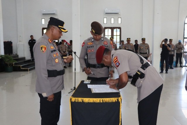 Dipimpin Kapolres AKBP Samuel D. Tatiratu selaku inspektur upacara. Dalam prosesi tersebut, jabatan Kasat Reskrim resmi diserahterimakan dari Habibi Cendrawasih Solosa kepada Bogi Trastanto.