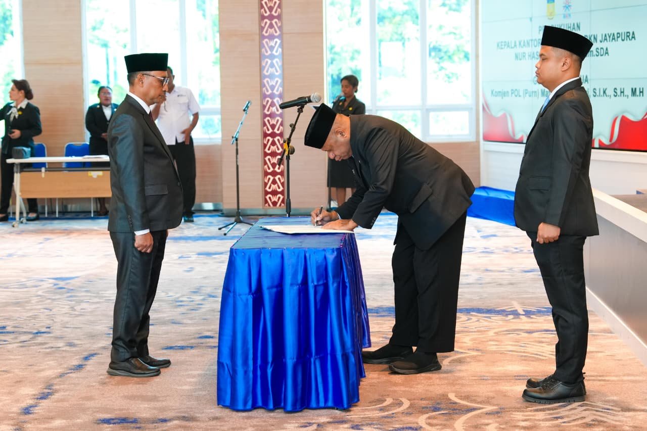 JAYAPURA, Klikjo.id — Gubernur Papua Matius D Fakhiri, mengukuhkan Nur Hasan sebagai Kepala Kantor Regional IX BKN Jayapura, Senin (20/4/2026).